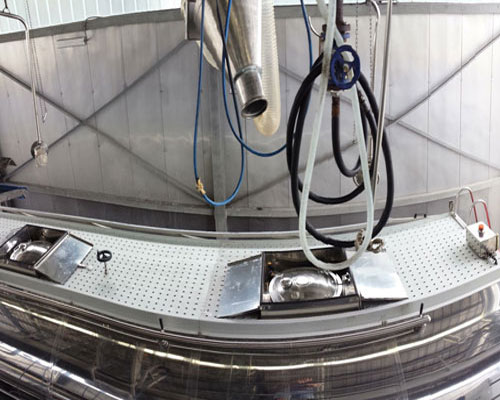 L'impianto è costituito da due piste ognuna servita da N° 5 testine rotanti con portata di 60 litri d'acqua al minuto cadauna, e temperature fino di 80°C. con pressione di 80 atm.Leggi tutto...