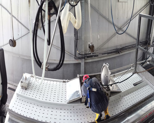 Asciugatura interna silos effettuata grazie a scambiatori di calore alimentati a vapore, trattata da pannelli filtranti con capacità filtrante di EU4 a garanzia di totale assenza di scorie.