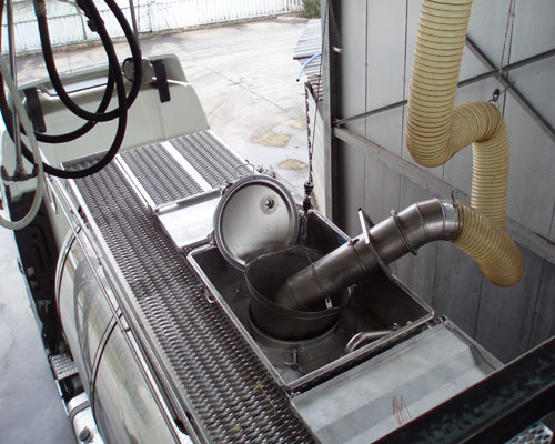 L'impianto è costituito da due piste ognuna servita da N° 5 testine rotanti con portata di 60 litri d'acqua al minuto cadauna, e temperature fino di 80°C. con pressione di 100 atm. Questa struttura è separa da quella dedicata ai prodotti chimici con attrezzature ed alimentazioni idriche indipendenti ed esclusivamente dedicate al lavaggio di prodotti alimentari. Le piste dispongono di 6 erogatori di vapore, 10 teste rotanti in acciaio e 6 testine per la sterilizzazione con prodotto chimico e 2 asciugatori ad aria microfiltrata calda o temperatura ambiente. I prodotti detergenti utilizzati sono certificati ad uso alimentare ed approvati dal ministero della sanità e viene utilizzata acqua potabile e acqua addolcita a zero gradi francesi.